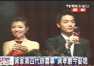 事實上,小兩口已經(jīng)在美國登記結(jié)婚,不過臺灣禮俗不可免,蔣孝嚴夫婦一大早就前往宜蘭迎娶新娘,兒子才是主角,當老爸的不敢太高調(diào)。而邀請誰來參加婚宴呢?蔣孝嚴傷透腦筋。
