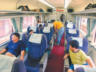 據(jù)了解,這趟行程源起于“監(jiān)委”慕南回郵輪列車之名,由“監(jiān)院”排定日期,但郵輪列車是不定期推出,加上臺鐵不敢怠慢,才派出最高級的商務(wù)彩繪列車。商務(wù)車基本配備為三節(jié)客車車廂,加上一節(jié)有卡拉OK設(shè)備及一節(jié)可提供餐飲服務(wù)的客廳車。客廂是三排椅、一節(jié)有三十三個座位,另兩節(jié)車廂可提供二十七個位置,全車共一百二十六個座位。