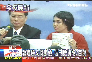結(jié)果一審判決,《壹周刊》和社長裴偉,要各付100萬給連惠心,總共200萬元;但壹周刊不服再上訴,現(xiàn)在二審定讞,《壹周刊》確定得賠償200萬,全案不得再上訴。