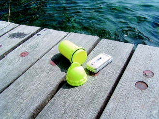 灣海洋公園救生員林垣銓27日中午撈撿海水池里的垃圾雜物,發(fā)現一個膠囊型防水盒;洗去油污后打開,內有一支手機,手機沒有浸到水只是沒電。