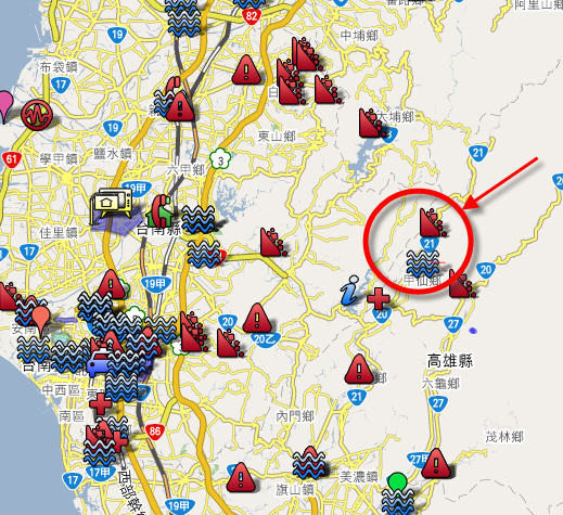 據(jù)臺灣《聯(lián)合報》報道,高雄縣的六龜鄉(xiāng)草南村、甲仙鄉(xiāng)小林村及旗山鎮(zhèn)南寮巷三十多戶村民,昨天疑遭土石流淹沒。六龜鄉(xiāng)中興村傳八民宅遭土石流淹沒,脫險的高雄縣消防局第三大隊長蘇定國說,十六名住戶生死未卜。