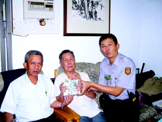 臺(tái)北市警局表示,八十二歲古雨甘退休前是蔣經(jīng)國(guó)官邸的管家,與現(xiàn)任郵局陽(yáng)明山支局稽查的老郵差陳淑武熟識(shí)。昨天上午十一時(shí)許,古雨甘帶著外籍女傭到陽(yáng)明山支局辦理定存解約,提領(lǐng)一百萬(wàn)元現(xiàn)金,行員沈江義與陳淑武見(jiàn)狀問(wèn)他領(lǐng)錢原因,古都不回答。