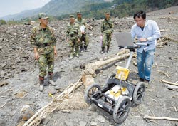 搜救人員表示,今天會再運(yùn)送兩臺儀器到小林村幫組搜尋,因災(zāi)難發(fā)生當(dāng)時很多人在屋內(nèi),故會先用儀器探測找出房舍再開挖。他們介紹儀器說,“電磁波探測儀”用來找尋地面下的石油、探礦,探測深度達(dá)十米;“透地雷達(dá)”則是發(fā)射雷射波,探測地面下是否有物體存在。
