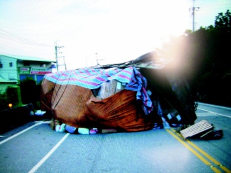 警方調(diào)查,住花蓮縣吉安鄉(xiāng)的余正輝是山本貨運(yùn)公司司機(jī),昨天清晨與助理林清華載賑災(zāi)物資到臺(tái)東太麻里;清晨四時(shí)五十分,大貨車(chē)行經(jīng)臺(tái)九線省道富里鄉(xiāng)石牌村彎道,突然失控翻車(chē),滑行十多米撞上路旁護(hù)欄,余正輝被夾在駕駛座上,頭部變形,已沒(méi)有氣息。