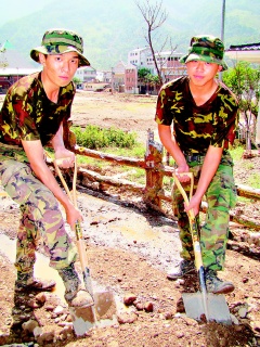 村民說(shuō),進(jìn)入桃源鄉(xiāng)救災(zāi)的臺(tái)軍都很年輕,“看到這群80后流汗付出,讓我們很感動(dòng)!睘楦兄x他們協(xié)助重建家園,炒野菜、殺山豬幫臺(tái)軍們加菜。