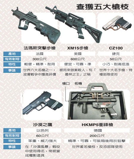 警方說,狙擊皮箱與另4支法國(guó)制突擊步槍,均為島內(nèi)首次查獲,火力是南部打擊犯罪中心的3倍,如流入黑幫手中不堪設(shè)想。