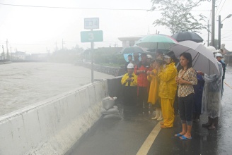 大水淹進(jìn)了丸山路住家,縣長呂國華和鄉(xiāng)長張秋明挨家挨戶敲門勸住戶撤離。軍方出動一百五十多名人力,協(xié)助堆砂包,清淤塞。