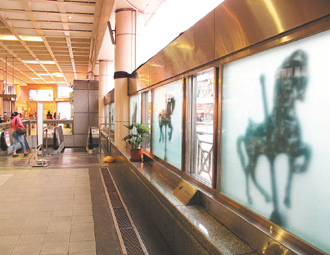 還有府中站“空間之詩”,造型特殊的長條型LED字幕機,民眾可用簡訊上傳詩文發(fā)表,但似乎使用率也不高,古亭站“邂逅”,造價近500萬元,12件臉譜創(chuàng)作,因高度過高、不易清理,已經看得出“歲月”留下的痕跡,中正紀念堂往金華街通道“非想、想飛”,造價320萬元,原有的攝影作品已不復見,只剩黑漆漆的長條框框。