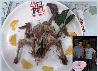 據(jù)臺灣TVBS 報(bào)道,“馬英九吃過的桶仔雞”?這只雞整只被啃得干干凈凈,只剩下骨架,十足展現(xiàn)馬英九節(jié)能減炭、愛物惜物的特色,來源無庸置疑,只是這雞怎么會落入賣家手中。