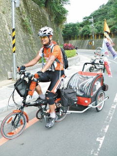 戴正東的“小拖車”其實(shí)是單車外掛的嬰兒車,他原本用來載體重26公斤混種獅毛犬出游,為了自行車環(huán)島,就用小拖車放置睡袋、帳篷、換洗衣物、小型充電器等裝置,重量達(dá)30公斤。