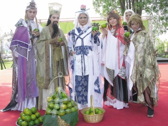 “竹崎水果節(jié)椪柑感恩祭”本周末舉辦兩天,昨天宣傳會(huì)邀請(qǐng)布袋戲偶像代言。竹崎鄉(xiāng)長(zhǎng)王焜弘兩任鄉(xiāng)長(zhǎng)任內(nèi)賣力促銷竹崎水果和觀光,每次都配合主題打扮成玉觀音、土地公等,昨天以布袋戲名人“素還真”扮相出現(xiàn),鄉(xiāng)親們爭(zhēng)相合影。