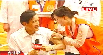 防疫總指揮朱立倫、“衛(wèi)生署長”楊志良上午率先接種疫苗,為國光所產(chǎn)的疫苗背書,今天下午馬英九也卷起袖子來接種,在施打前,縣長周錫瑋還向馬英九保證不會痛,一點(diǎn)感覺都沒有,馬英九則笑說,怎么可能一點(diǎn)感覺都沒有。馬英九用行動(dòng)表示,呼吁民眾要對自制疫苗有信心。