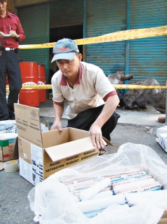 王姓承包商表示,該間屋內(nèi)的40公斤乳膠炸藥若同時(shí)引爆,會(huì)波及方圓20米內(nèi)的民宅,威力不容小覷。