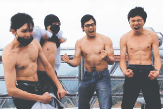 中新網(wǎng)12月23日電 據(jù)臺(tái)灣《聯(lián)合報(bào)》報(bào)道,來自花蓮的東華大學(xué)英語系學(xué)生游子正等4人,為了挑戰(zhàn)零下3度低溫,上周末到合歡山上打赤膊,由于實(shí)在太冷,個(gè)個(gè)亢奮的大叫以驅(qū)寒,表情扭曲、逗趣。