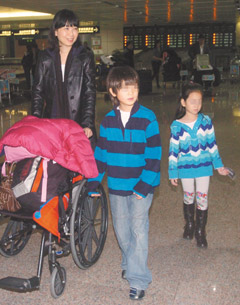 中新網(wǎng)1月21日電 據(jù)臺(tái)灣《聯(lián)合報(bào)》報(bào)道,國(guó)民黨秘書長(zhǎng)金溥聰?shù)钠拮又芑坻门c一雙兒女結(jié)束5個(gè)月的華盛頓之旅,20日清晨返抵臺(tái)灣。由于周慧婷之前才摔傷,一路上還得照料2個(gè)也都受傷的孩子,一到桃園機(jī)場(chǎng),周慧婷帶著孩子上車走了,讓趕來接機(jī)的金溥聰撲了空。這對(duì)糊涂夫妻還得靠記者幫忙傳話,連周慧婷也笑說:“我不知道他要來接,他可能是想給我驚喜。”