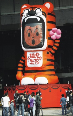 中新網(wǎng)2月11日電 據(jù)“中央社”報(bào)道,2010臺(tái)北燈節(jié)26日起一連舉行10天,除傳統(tǒng)花燈外,臺(tái)北市政府文化局今年結(jié)合當(dāng)代藝術(shù),規(guī)畫“公共藝術(shù)燈區(qū)”,在市府大樓門前及上方放置2只可愛(ài)的“開(kāi)心福虎”,并將征募6666位民眾的大頭照,在燈節(jié)期間投影在臺(tái)北市政大樓的外墻上。