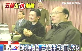 中新網(wǎng)3月11日電 據(jù)臺灣TVBS報道,胡志強昨天幽默調(diào)侃了郝龍斌跟馬英九十指相扣,有點吃醋的意味,國民黨秘書長金溥聰今天一大早邀胡志強吃早餐,兩人坐在一起,金溥聰把手放在胡志強大腿上,拉攏的肢體動作相當(dāng)刻意,胡志強則表現(xiàn)輕松。