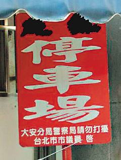 一家位于敦化南路、文昌街口的私設停車場,竟然還掛著“警察局請勿打擾 臺北市議員啟”的招牌,用來恐嚇取締。