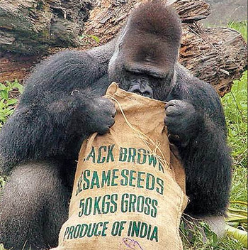 資料顯示,公成年金剛猩猩背上有象征年長(zhǎng)的銀白長(zhǎng)毛,有人稱(chēng)之“銀背”。性情溫和、重視家庭,生氣時(shí)會(huì)搥胸吼叫。幼年期的搥胸動(dòng)作多為表達(dá)滿足之意,成年時(shí)的搥胸意義復(fù)雜,有時(shí)用來(lái)警告入侵者。