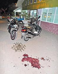 警方調(diào)查,昨下午三時(shí)三十分,蘇男騎摩托車抵屏東臺(tái)糖冰品部停車場(chǎng)時(shí),郭女已在廣場(chǎng)等候,兩人停下機(jī)車談判,但才過幾分鐘,蘇、郭兩人一言不合吵了起來,蘇男突取出水果刀欲刺郭女,郭女轉(zhuǎn)頭想逃,但背部仍遭蘇男連刺六刀,傷重不支倒地。蘇男隨后持刀自刺頸部、左手臂、左腕后倒地,由于案發(fā)地點(diǎn)就在市區(qū),兩人很快被人送到醫(yī)院。軍方接報(bào)為避免蘇男情緒波動(dòng)太大,已派人在醫(yī)院看護(hù),而女方家人趕到醫(yī)院時(shí),低調(diào)不愿多談。兩人均已脫離險(xiǎn)境。