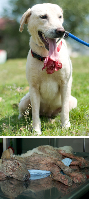救援小組元月初據(jù)報(bào),在高雄市楠梓區(qū)旗楠路一處果園救援1只“幾乎沒有臉的狗”。倪兆成說(shuō),它罹患嚴(yán)重的皮膚病,全身潰爛流膿,毛掉光,左眼失明,奄奄一息。送動(dòng)物醫(yī)院急救輸血,半個(gè)月后才脫離險(xiǎn)境,取名“Melody”。