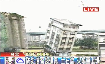 臺(tái)北縣下午進(jìn)行災(zāi)害演習(xí),其中有個(gè)片段是模擬強(qiáng)臺(tái)來(lái)襲時(shí),橋梁斷裂,造成轎車掉入橋中火燒車。