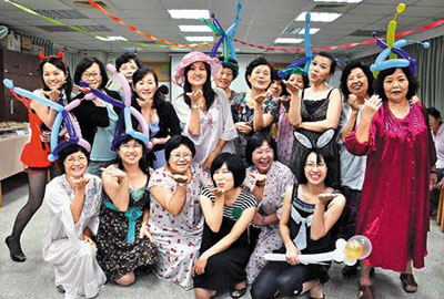 成立12年的高雄市立社教館綠茵讀書會(huì),26位會(huì)員清一色是女性,年齡從30歲辣媽到60歲辣阿嬤都有。會(huì)長(zhǎng)連秀敏說,為舉辦另類學(xué)習(xí)慶生會(huì)活動(dòng),大家決定瘋一下創(chuàng)意,睡衣性感搖滾不是藝人名模專利,有自信、夠精彩的讀書會(huì)辣媽、辣嬤們,也可以“穿出創(chuàng)意,樂活人生”。