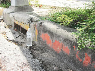養(yǎng)工處人員查證發(fā)現(xiàn)這處凹洞是排水之用,但由于原本就有積水,使得雜草叢生,導致類似踩空而跌倒,的確是排水孔維護不當引起。