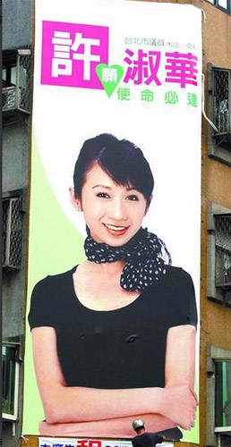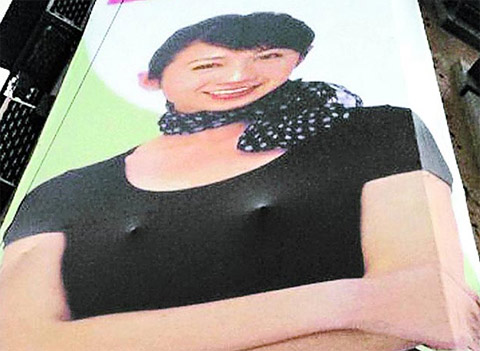中新網(wǎng)5月19日電 據(jù)臺灣《蘋果日報(bào)》報(bào)道,臺北市信義路、松仁路口的臺北市議員許淑華競選廣告帆布廣告牌,于20多天前設(shè)立,因當(dāng)時(shí)晚上施工的人員未拆下帆布后方凸出鐵條,導(dǎo)致廣告上胸部位置有兩點(diǎn)凸起,造成“激凸”效果。