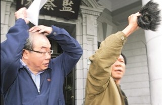 黃永田在“監(jiān)察院”門口掀掉邱毅假發(fā)的畫面,一度被他拿來做名片發(fā)送,被邱毅一狀告進(jìn)法院。黃永田當(dāng)時(shí)受訪辯稱,“這是報(bào)紙登的,不是我登的。”