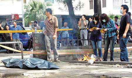 翁姓男子馬上騎摩托車(chē)往善士街方向,再右轉(zhuǎn)保泰路,騎了600米抵崗山仔公園,并打手機(jī)給一名林姓女友人,告訴她“我要自殺了”,翁姓男子走入公園,電話都還沒(méi)掛斷,即舉槍朝右太陽(yáng)穴開(kāi)槍,一槍斃命。