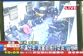 中新網(wǎng)6月24日電 據(jù)臺灣TVBS報道,高雄有一名男子,因為不滿同居女友打算帶著孩子要求分手,竟然持棍棒追打、拖行女友,過程全都被監(jiān)視器錄下。