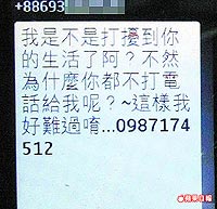 民眾藍先生昨日在臺北市議員李文英陪同下出面控訴,他十七歲兒子前天凌晨收到“為什么你都不打電話給我呢?這樣我好難過唷”短信,以為是同學而回撥,翌日接獲電信業(yè)者通知暴增一萬八千多元通話費。