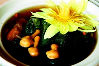劉邦傳說,新興園的烏骨雞湯和一般雞湯不同,以蓮蓬、蓮子等堅(jiān)果類食材清燉,加上巴西蘑菇,營(yíng)養(yǎng)程度高。