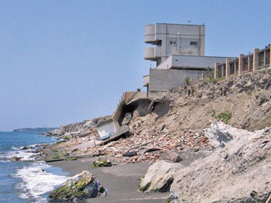 北汕里里長黃福明說,沙灘流失2010年最嚴(yán)重,原本寄望冬天能回補(bǔ)卻沒有,沙子不知跑哪去?連原本只有1米高堤防也因海水侵蝕,沙子流失讓堤防長高4米。
