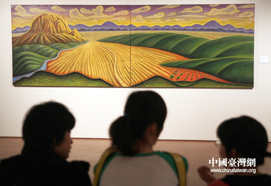 據(jù)上海美術(shù)館金小姐介紹,此次展覽的50件展品,均是臺北市立美術(shù)館館藏自上世紀五十年代以來,臺灣具有代表性藝術(shù)家的精品。這些作品描繪了臺灣各地的風光,展覽則依據(jù)地理位置大致分為8個區(qū)域。觀眾們走進展廳,便開始了一場視覺上的寶島之旅。