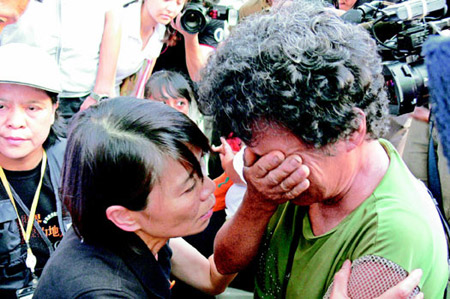 另外幾個(gè)地方,同樣有許多聲淚俱下的災(zāi)民,她依然不斷輕撫災(zāi)民的肩、背,撫慰大家:“我們一起面對(duì)困難,要堅(jiān)強(qiáng)、勇敢地站起來,走出難關(guān)!