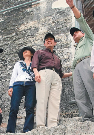 在參觀馬雅遺址過(guò)程,馬英九巧遇朱宗慶打擊樂(lè)團(tuán),連忙稱贊說(shuō)“大家愛(ài)死你們了”;朱則客氣反問(wèn)“你累不累?”沒(méi)想到馬英九尚未答話,周美青隨即搶答說(shuō)“他什么都沒(méi)做,怎么會(huì)累!”甚至當(dāng)馬英九學(xué)著打擊樂(lè)團(tuán)團(tuán)員表演動(dòng)作,周美青還說(shuō)“人家比較優(yōu)雅”,絲毫不給馬英九留情面。