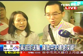 而原本在民進(jìn)黨高雄市黨部協(xié)助提供法律咨詢的陳致中,在聽聞母親因為血壓過低緊急送醫(yī)后,也隨即趕往醫(yī)院探視。