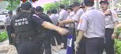 中新網(wǎng)9月1日電 據(jù)臺(tái)灣媒體報(bào)道,應(yīng)民進(jìn)黨籍官員邀請(qǐng)入臺(tái)的達(dá)賴?yán)锝裉焐衔缭诟咝劬薜?綜合體育館)舉辦所謂祈福法會(huì),場(chǎng)外抗議人士聚集。