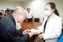 之前感染新流感的“立委”田秋堇,剛好也在“立院”,吳敦義惟獨對戴著口罩的田秋堇,拱手而不握手。