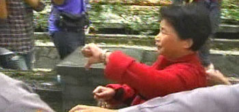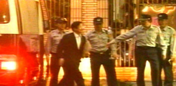 在法警的護(hù)送下,陳水扁身著黑西裝,手拿一份牛皮紙袋的資料,從臺(tái)北看守所出發(fā)乘警備車前往法院。下午5時(shí)40分,車隊(duì)抵達(dá)法院,陳水扁臉上帶著一抹淺淺的微笑,未戴手銬。