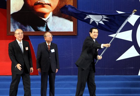 在主席監(jiān)誓人、國民黨選監(jiān)委員會(huì)召集人邱創(chuàng)煥的監(jiān)交下,馬英九從卸任黨主席吳伯雄手中接下印信、黨旗,宣告“馬主席時(shí)代”來臨,國民黨將邁向以黨輔政的“完全執(zhí)政、完全負(fù)責(zé)”新局。