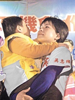她有個(gè)響叮當(dāng)?shù)墓珔遣,丈夫吳志揚(yáng)又總是綠營攻訐的箭靶,她也忍受了許多委屈。如今,兒媳、妻子與輔選角色間的轉(zhuǎn)換,她已應(yīng)付自如,五日晚間希望與夫婿擁抱,再嘗勝利果實(shí)。