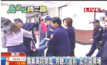 另?yè)?jù)臺(tái)灣TVBS報(bào)道,開庭前,庭外一名女子試圖闖入法庭旁聽遭到警方制止并抬出庭外,該名女子激動(dòng)喊叫,似乎相當(dāng)關(guān)心陳水扁在法庭內(nèi)的表現(xiàn)。