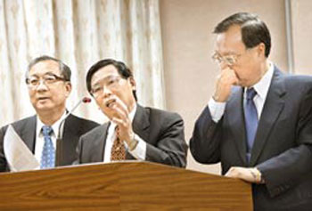 審查會邀請“考試院”、“司法院”、“法務(wù)部”及代表“行政院”的“人事行政局”報告,報告書內(nèi)容各自捍衛(wèi)立場,“考試院”更在場散發(fā)說帖,尋求支持,場外卻有“臺灣公務(wù)人員協(xié)會”穿梭,反對強制考績丙等定3%的立場。