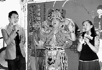 曾經(jīng)扮過帕瓦羅蒂、圖蘭朵公主的臺中市長胡志強,21日再度出招,扮成手持長戟的八家將,為下月舉辦的“真愛臺中”大型演唱劇造勢。