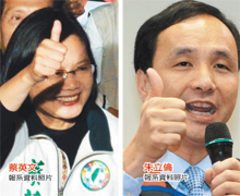 中新網(wǎng)6月1日電 據(jù)臺(tái)灣《聯(lián)合晚報(bào)》報(bào)道,民進(jìn)黨主席蔡英文周六前往高雄出席活動(dòng),國(guó)民黨新北市長(zhǎng)參選人朱立倫周三提前南下,與黨籍市長(zhǎng)參選人黃昭順“北高輝映”,周四和臺(tái)北市長(zhǎng)郝龍斌一同舉行“北北共榮”記者會(huì)。“英倫”兩人捉對(duì)廝殺,戰(zhàn)場(chǎng)將從新北市擴(kuò)及全臺(tái)“五都”。