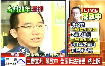 二審宣判出爐,陳致中從一審的2年6個月,罰金1.5億(新臺幣,下同),改判為1年2個月,并科罰金3000萬,不過他卻相當不領情。