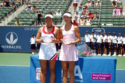 中新網(wǎng)8月10日電 “中央社”發(fā)自洛杉磯的報(bào)道稱,當(dāng)?shù)貢r(shí)間9日,中國(guó)大陸選手晏紫與臺(tái)灣選手莊佳容的“兩岸組合”,在洛杉磯女子網(wǎng)球錦標(biāo)賽榮獲雙打冠軍。
